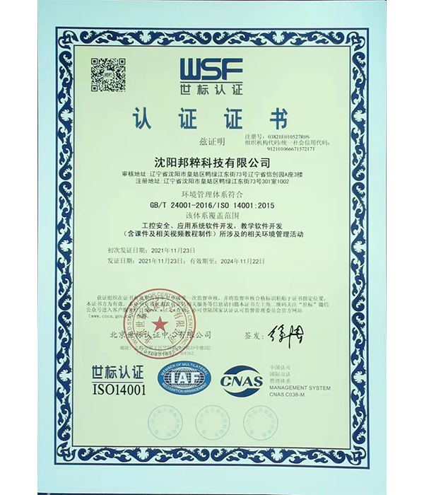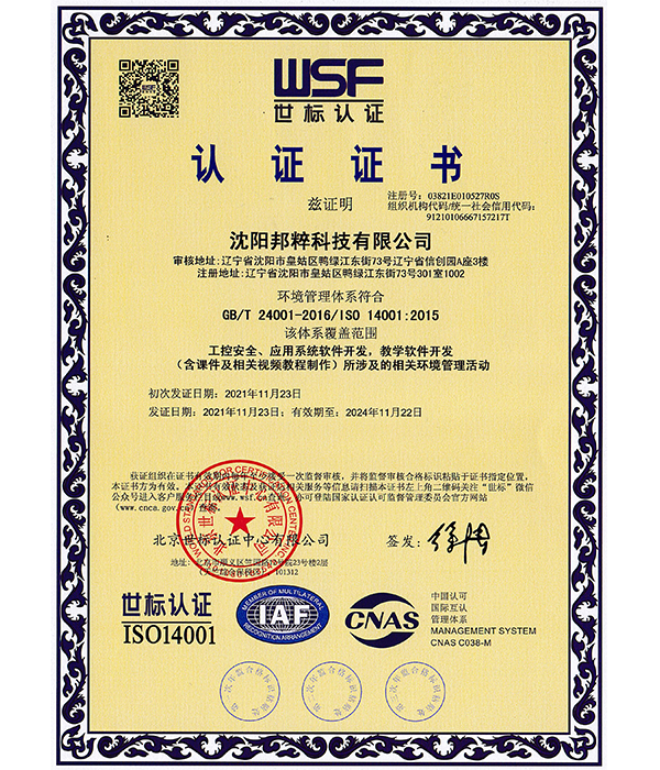 環(huán)境管理體系認(rèn)證證書